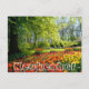 Cartão Postal Flores no Keukenhof, árvores e tulipas