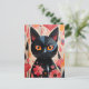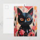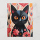 Cartão Postal Flores Pretas, Rosa, Gato