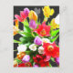 Cartaz de Arte do Buquê das Flores Românticas Coloridas da primavera. Um buquê romântico colorido com flores de tulipas cor-de-rosa, vermelha, amarela e branca no cartão postal de cor do cheio solar quente. Quase dá para sentir o cheiro das flores! Este belo cartão postal floral é totalmente personalizável, altere o texto "Tulips de Primavera", adicione e personalize com seus textos e imagens pessoais! Um belo presente romântico de flores de primavera.