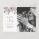 Cartão Postal Flores roxas de aquarela. Floral Salvar a Data