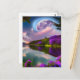 Cartão Postal Flores roxas Reflexão da lua e do lago