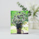 Pensando em vocês, flores silvestres, postais. Cartão floral de fotografia tem Daisies e Buttercups em um velho lançador de vidro. O texto frontal diz "Pensando em você" e o reverso diz "e dizendo uma oração". Ambas as áreas estão na forma de modelo para facilitar a personalização. Adequado como uma saudação de sucesso ou encorajamento.