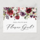Você será minha florista? Peça à família e aos amigos que façam parte do seu casamento com este cartão de pedido de festa floral. Apresenta ilustrações de aquarelas de flores vermelhas, cor-de-rosa-pincel, marfim e roxas. Esta proposta de floral é perfeita para o casamento outono. Personalize adicionando nomes e mensagens.
