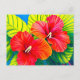 Cartão Postal Flores vermelhas hibiscus havaianas com folhas ver