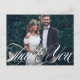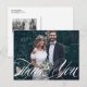 Florescimento de Script Elegante Branco Foto Casamento Obrigado Você Cartão Postal | Envie agradecimentos a familiares e amigos por fazerem parte do seu dia especial com este cartão postal de agradecimento personalizável. Ele apresenta sobreposição de texto "obrigado" e tipografia serifada.