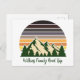 Personalize os cartões postais de viagem da sua família para comemorar uma jornada através da natureza neste verão ou outono. Personalize com o seu sobrenome debaixo da floresta verde de árvores e pôr do sol da montanha escura para manter férias legais para o seu grupo ao ar livre.