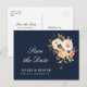 as aquarelas caem arnu, pincel e flores douradas com design de script branco e cor azul marinho. Você pode editar o texto e as cores.