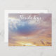 Este cartão de posto fotográfico captura um pôr do sol espantoso nas Chaves da Flórida, com o céu em chamas em matizes ouros e em camadas com nuvens dramáticas em tons de roxo e azul. O brilho suave do pôr do sol filtra-se através das nuvens, criando um céu hipnotizante sobre o oceano invisível abaixo. Perfeito para amantes do pôr do sol, entusiastas da natureza, e para aqueles que apreciam a beleza das Keys, esta imagem traz a essência tranquila mas vibrante de uma noite tropical para o seu espaço. É ideal para qualquer pessoa que aprecie a beleza dinâmica das paisagens de nuvens ao anoitecer nas Chaves da Flórida. @ Rosemarie Guieb