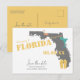 Salve os cartões postais num estado bonito de design da Flórida, perfeito para o seu casamento na praia! O casamento do tema da praia na Flórida salve os cartões postais de data que apresentam um estado colorido de design da Flórida com flamingo cor-de-rosa, vidro margarita e chinelos. Personalize o cartão com seus nomes e data de casamento e retorne as informações de endereço no verso. Se precisar de mais alguma personalização ou ajuda com o modelo, entre em contato comigo através da minha loja.