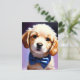 Cartão Postal Fluffy Puppy Adorável w Arco azul