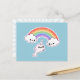 Kawaii voando narral com amigos felizes da nuvem e arco-íris brilhante.