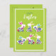 Cartão postal de Páscoa feliz com coelhinhos folclóricos coloridos em fundo verde fresco. Design inspirado na arte popular polonesa da região de Lowicz. O texto na parte de trás é totalmente personalizável. Basta assinar na parte inferior e o cartão de aniversário único está pronto para fazer alguém sorrir.