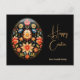 Dê as boas-vindas ao "Folklore Blossom Easter Greetings"! Este cartão-postal é uma mistura encantadora de cores vibrantes e desenhos intrincados inspirados no folclore tradicional polonês. A frente apresenta um ovo de Páscoa lindamente decorado, adornado com padrões florais deslumbrantes em tons ricos de vermelho, amarelo, azul e verde contra um fundo preto. A atenção aos detalhes nessas disposições simétricas de flores e folhas é verdadeiramente cativante.