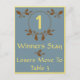 O outono deixa a placa de Mesa Bunco nº 1 design de arte gráfica por Artinspirou*. Use isto no seu jogo Bunco durante o mês de outubro e novembro ou durante todo o ano. Na moda design apresenta um esquema de cores azul, amarelo e marrom. Os design incluem folhas de carvalho com bolotas e um ornamento redondo para colocar o número da tabela. O texto diz que os vencedores ficam e os perdedores vão para a Mesa 3. O texto e o número da tabela podem ser alterados. Este cartão funcionaria também para casamentos, almoços, chás, arrecadadores de fundos, jantas e outros eventos, caso fosse necessário um cartão de mesa.
