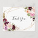 Este obrigado de folhagem floral e botânica rústico que você faz é perfeito para o casamento moderno. A design apresenta flores e folhagem lindas e coloridas desenhadas à mão, elegantemente organizadas em buquês atraentes, enfeitando uma armação geométrica dourada. Personalize a parte traseira do cartão postal, incluindo seus nomes, endereço de devolução e um obrigado da mensagem. Ou deixe a seção modelo da mensagem do obrigado do do para redigir algumas palavras em cada placa depois que elas chegarem. Estas cartas podem ser usadas para um casamento, chá de panela, ou quando quiser dizer obrigados.