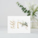 Belo cartão de número de mesa com um motivo botânico - uma ilustração aquática das folhas verdes e douradas. Mesa 7. Verifique todos os números disponíveis