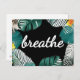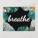 Lindo cartão-postal com fundo colorido de selva e uma declaração ousada que diz "respire". Suas vibrações atraem sua tribo, então sinta sua vida cheia de riqueza e você atrairá mais recursos. Não acredita? Inspire. Tente contar tudo pelo que você é grato. Agora você consegue ver quantas comodidades e luxos existem em sua vida diária? Faça um compromisso de escrever em seu diário de gratidão todos os dias. Liste pelo menos três coisas pelas quais você é grato todos os dias. Aumente para dez coisas por dia, então chegue a um ponto em que você possa contar cem coisas maravilhosas pelas quais ser grato. Eventualmente, você começará a meditar de forma consciente, notando o que é bom e certo em cada momento. Respire.