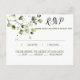 Crie um cartão de resposta personalizado e esplêndido, chique e elegante para o seu casamento, banquete ou evento de festa. Este cartão de inserção apresenta um arranjo vibrante de folhas de eucalipto em aquarela com alguns brilhos cintilantes. Você pode personalizá-lo facilmente com seu próprio texto e customizá-lo ao seu gosto. Nota Adicional: O brilho e a impressão em folha dourada são um efeito de folha dourada falso. NÃO é a folha dourada real de hot stamping.