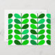 Cartão postal num século de Médio Moderno Dinamarquês inspirou um padrão têxtil estilizado de folhas - tons de verde, de limão claro a esmeralda escura, num fundo branco