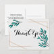 Cartão Postal Folhas Florais Verde Folha Dourada Obrigado
