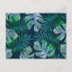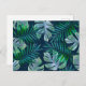 Palmas de trópicos de aquarelas e folhas de monstera sobre fundo azul marinho.