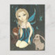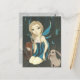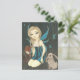 Uma fada com jaqueta de esquilo e cartão postal de raposa.