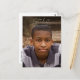 Este cartão-postal de graduação simples e moderno apresenta uma falso capa de script de folha de alumínio prateada e foto de cheio. Na frente, "Formando" é exibido no topo em um script manual informal sobre uma foto vertical grande. O nome do formando, o ano de graduação e a escola também estão escritos no topo. Na parte traseira do cartão postal, você pode escrever uma mensagem para os destinatários e adicionar detalhes da festa de formatura.