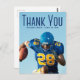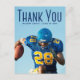Obrigado Você escreveu em tipografia azul alta sobre seu retrato de mais velho foto de formando faz um simples obrigado de graduação que você faz do cartão-postal de um jogador de futebol de uma equipe esportiva. Personalize com seu nome e classe de 2023 nesses cartões postais de formando de sobreposição de texto minimalista. Escreva uma mensagem personalizada de obrigados no verso.