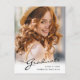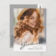 Um cartão postal de anúncio de graduação personalizado exclusivo, com elementos design do texto moderno fundidos com um roteiro elegante de caligrafia. A foto dos formandos destaca a frente do cartão, enquanto a parte traseira do cartão oferece espaços de texto personalizados para informações sobre a formatura e a viagem futura. Os fundos são gradiente branco moderno na frente e cinza prateada na parte traseira ou personalizam facilmente a parte traseira da placa para uma cor de sua preferência. Para ver mais itens como este, visite minha loja aqui em "www.Zazzle.com/LakeViewCardCo". Obrigados