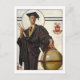 A imagem de um formando em boné e vestido ao lado do globo é "Formando" feito em 1920 pelo artista americano Joseph Christian Leyendecker (1874-1951). É a nossa Série de Belas Artes nº 30.