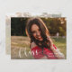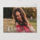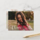 A palavra "Formando" em um roteiro branco sobrepõe sua foto favorita nestes cartões postais Obrigado pela sua formatura. Adicionamos uma camada de gradiente de cinza opcional na parte inferior para que o texto branco possa ser lido sobre sua foto. Adicione a mesma foto ou diferente no lado do endereço traseiro - adicionamos uma camada de fotos suave à imagem traseira para facilitar a leitura das informações.