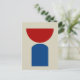 Uma design abstrato de arte moderna de formas geométricas vermelhas e azuis num fundo bege.