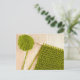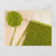 Bola de lã verde e costura de roupa numa agulha de tricô