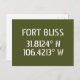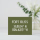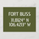 Coordenadas do mapa Latitude e longitude para Fort Bliss, fonte branca estilo El Paso TX Stencil no fundo verde do Exército.
