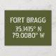 Coordenadas do mapa de latitude e longitude para Fort Bragg, perto de Fayetteville, fonte branca estilo Estêncil da Carolina do Norte em fundo verde do Exército.