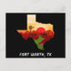 Contorno do estado do Texas com um cartão postal de design único para enviar aos seus amigos e entes queridos de Fort Worth!
