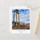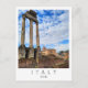 Três colunas romanas em torre sobem de um antigo templo, ecoando a grandeza de uma civilização perdida. Atrás deles, uma igreja domada e edifícios clássicos se misturam passado e presente, enquanto caminhos de pedra e ruínas convidam uma reflexão silenciosa. O céu parcialmente nublado adiciona drama a esta paisagem romana eterno.