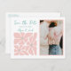 Diga "Salve a data" em estilo de ranhura com este Cartão-postal de Foto Chic Retro Floral! Apresentando florais ousados inspirados em vintage, roteiro lúdico e espaço para sua foto de casal favorita, este design traz uma vibração divertida e nostálgica ao anúncio do seu casamento. Perfeito para casais de espírito livre planejando um cheio de cor, alegria e personalidade.