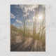 Grama sobre as dunas em plena luz do sol nas costas dos Países Baixos, mar do Norte.