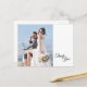 Este simples obrigado de fotos em forma de caligrafia branca e preta que você faz no postal traz um luxo elegante mas moderno a um casamento minimalista e mais tradicional ou formal. A caligrafia casual permite um sentimento antigo, enquanto o design neutro de classe pode ser combinado com quaisquer aspectos únicos da celebração do casamento. Digite uma nota personalizada no verso ou deixe-a vazio de escrever manualmente sua apreciação.