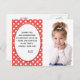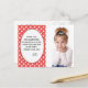 Cartões de agradecimentos de festa de aniversário, linda, menina, com design vermelha e branca. Este cartão é completamente personalizável, por isso adicione a sua fotografia e coloque o texto nos espaços fornecidos. Para obter um controle mais criativo, use o botão "Personalizar" para alterar a fonte, o tamanho da fonte ou a cor.