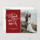 Envie obrigados para a família e amigos com este obrigado de fotos personalizável que você postais. Apresenta a moderna letra de mão com um fundo vermelho. Personalize adicionando sua foto e detalhes. Este obrigado fotográfico que você faz com cartão postal é perfeito para casamentos, graduações, aniversários e outros eventos.