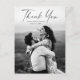 Cartão de agradecimento de casamento com foto e roteiro moderno. As cores podem ser alteradas. O verso inclui uma mensagem genérica de agradecimento que você pode personalizar para cada convidado ou remover completamente se preferir escrever seu agradecimento à mão.