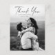 Casamento de foto com roteiro elegante, sofisticado e moderno cartão postal de agradecimento. Parte de uma coleção de casamento. O verso inclui uma mensagem de agradecimento que você pode personalizar para cada convidado ou remover se preferir escrever seu agradecimento à mão.