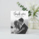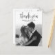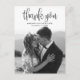 Esta Foto de Casamento de Script de Caligrafia Moderna Obrigado O Cartão-postal mostra sua foto de casamento de cheio, com a cobertura de script de caligrafia. Personalize seu obrigado especial de casamento que você está atrás ou remova-o para deixar o vazio de trás para sua mensagem manuscrita de obrigados.