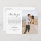 2 obrigado de casamento fotográfico que você postcard apresenta um design moderno e mínimo com fotos de casamento na frente e atrás do cartão, e simplesmente a letra de na moda coração "obrigado você". A placa inclui uma mensagem de obrigado personalizada do casal recém-lançado que pode ser personalizada na frente. Note que o esquema de cores preto e branco pode ser modificado.