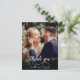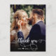 Foto De Casamento Com A Mão Moderna Obrigado Postard. Obrigado de casamento do Na moda moderno seu modelo de cartão postal com uma foto vertical do cheio na frente com o texto "Obrigado" em uma fonte de script de tipografia escrita com letras giras, com pinceladas em branco na foto. Personalize o nome personalizado e a mensagem do obrigado. O nome modelo inclui um pequeno coração branco. Se preferir escrever manualmente a sua nota, basta eliminar o texto de amostra para obter mais espaço. Se você precisar de ajuda ou item correspondente, entre em contato comigo!
