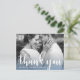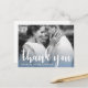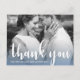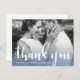 Simples roteiro branco do "obrigado você" com doce obrigado de casamento que você envia na parte de trás do cartão, e cheio na frente com a camada azul da tendência.