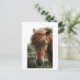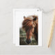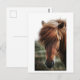 Este cartão-postal mostra uma foto retrato de um cavalo marrom em um campo.