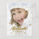 Envie esta maravilhosa saudação de cartão com fotos de feriado para seus amigos e família. Acredite no Mágico em uma fonte dourada com um padrão de confete de estrela dourada. Design por Elke Clarke © Outras cores disponíveis mediante pedido.